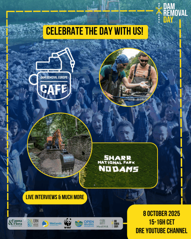 As part of the celebrations, Dam Removal Europe will host the Dam Removal Day Café, streaming live on the DRE YouTube channel from 15:00 to 16:00 CET.